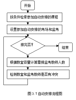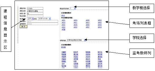 监考教师安排的自动化主要是针对每学期期未考试的所有课程,系统自动对已安排好时间和考场的课程进行监考教师的安排。如果教务员不满意系统的自动安排可对其进手动调整。